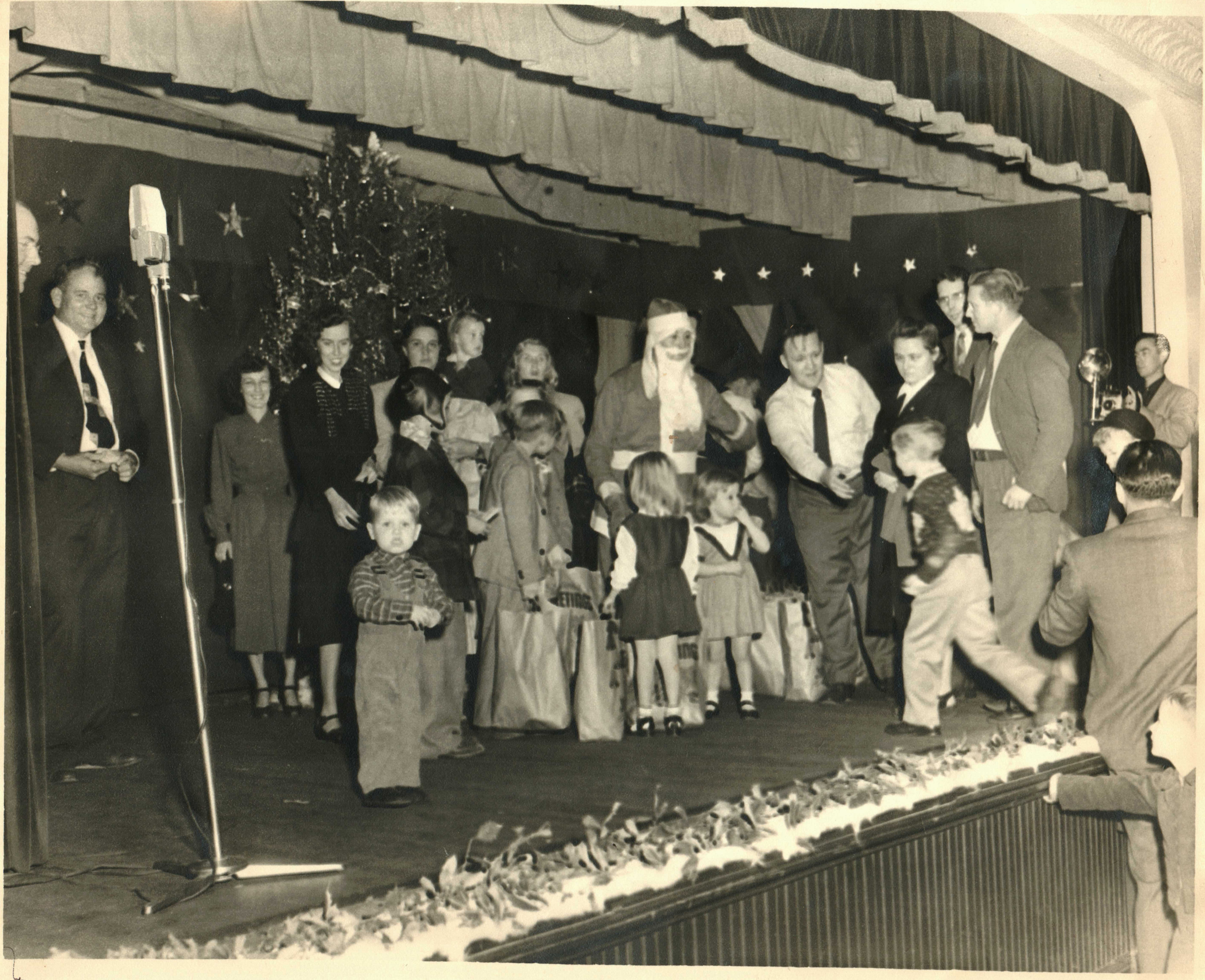 Photo sidebar reads: "Linda & Judy in front of Santa Clause, me the first one on left of back row"
