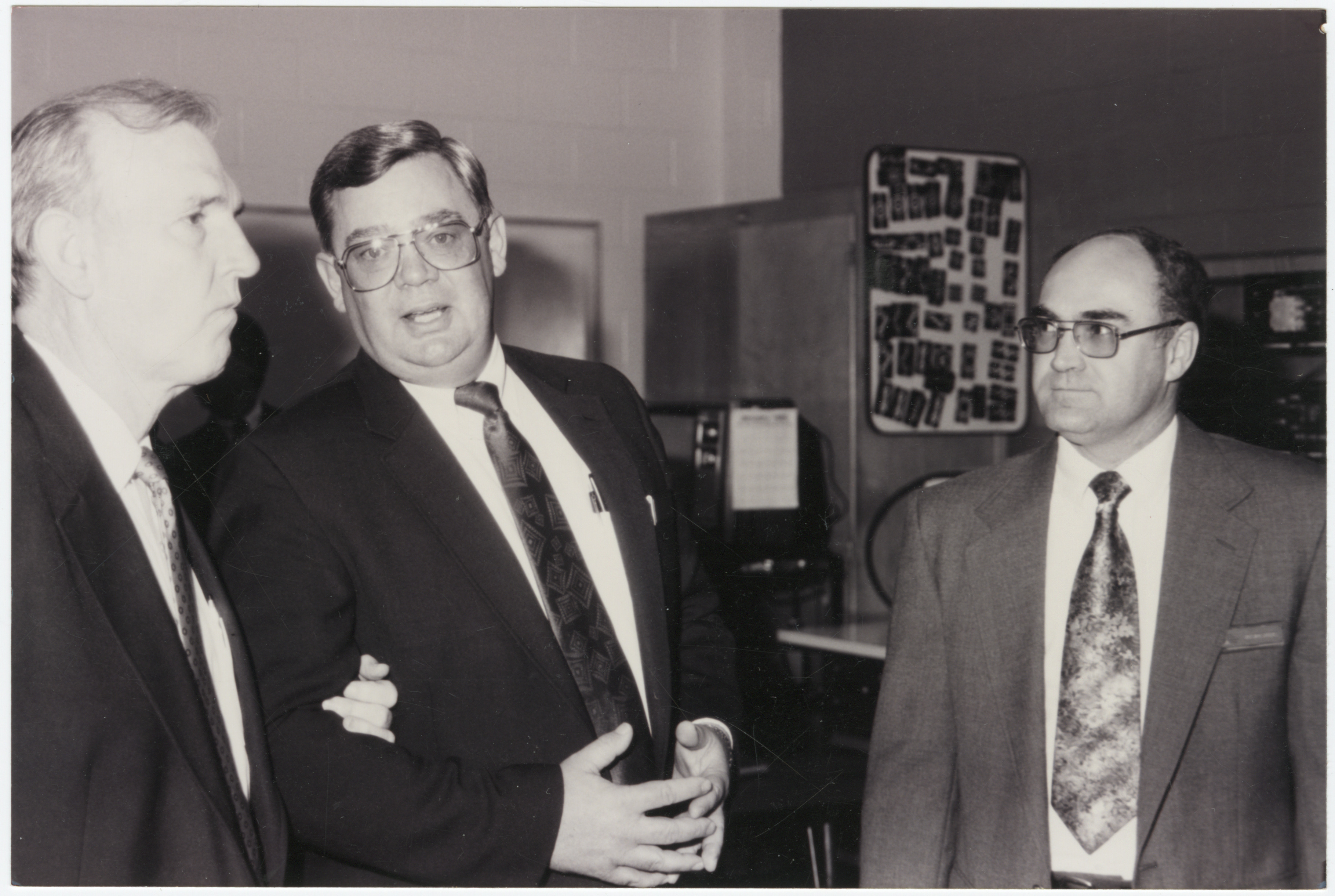 Central Carolina Community College trustees and faculty (L to R): Trustee Hal Siler, Carter Rosser, and Physics instructor Preston Sellers.