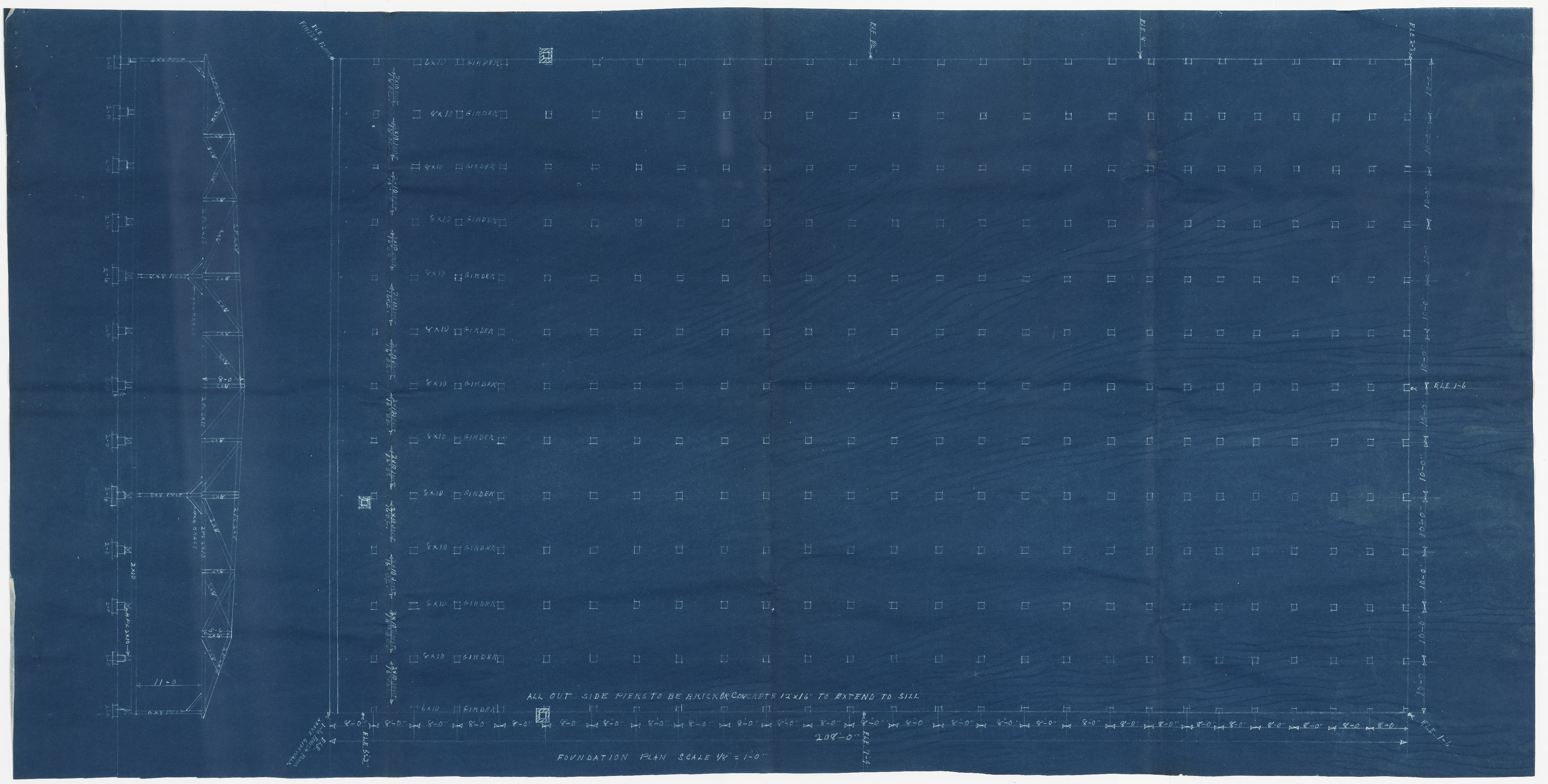 Foundation Plan for Unidentified Building, Possibly a Warehouse