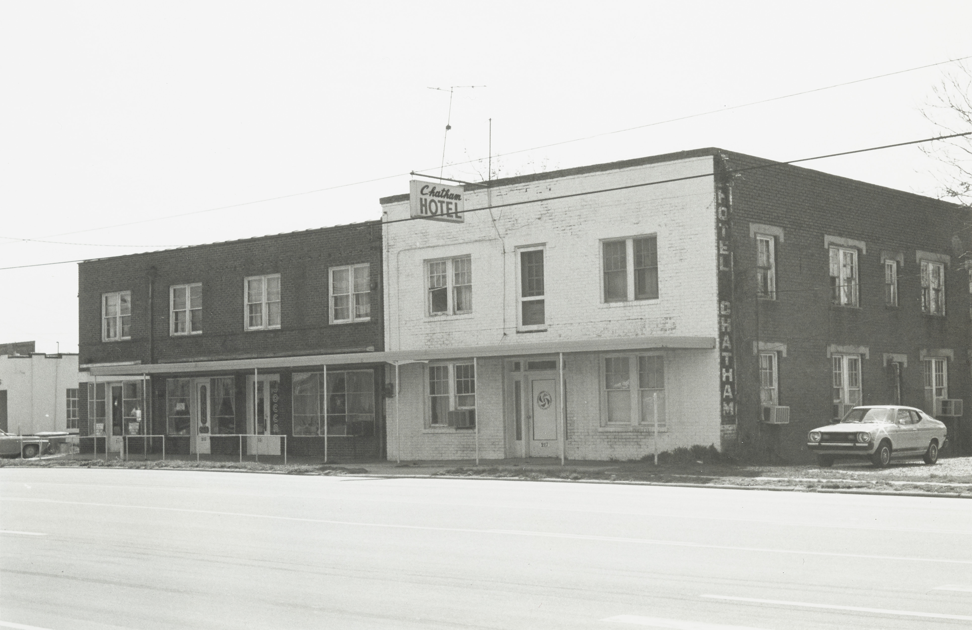 North Second Avenue Central Business District 200 block. More information about this photograph can be found on page 138-139 of the book The Architectural Heritage of Chatham County, North Carolina written by Rachel Osborn and Ruth Selden-Sturgill.