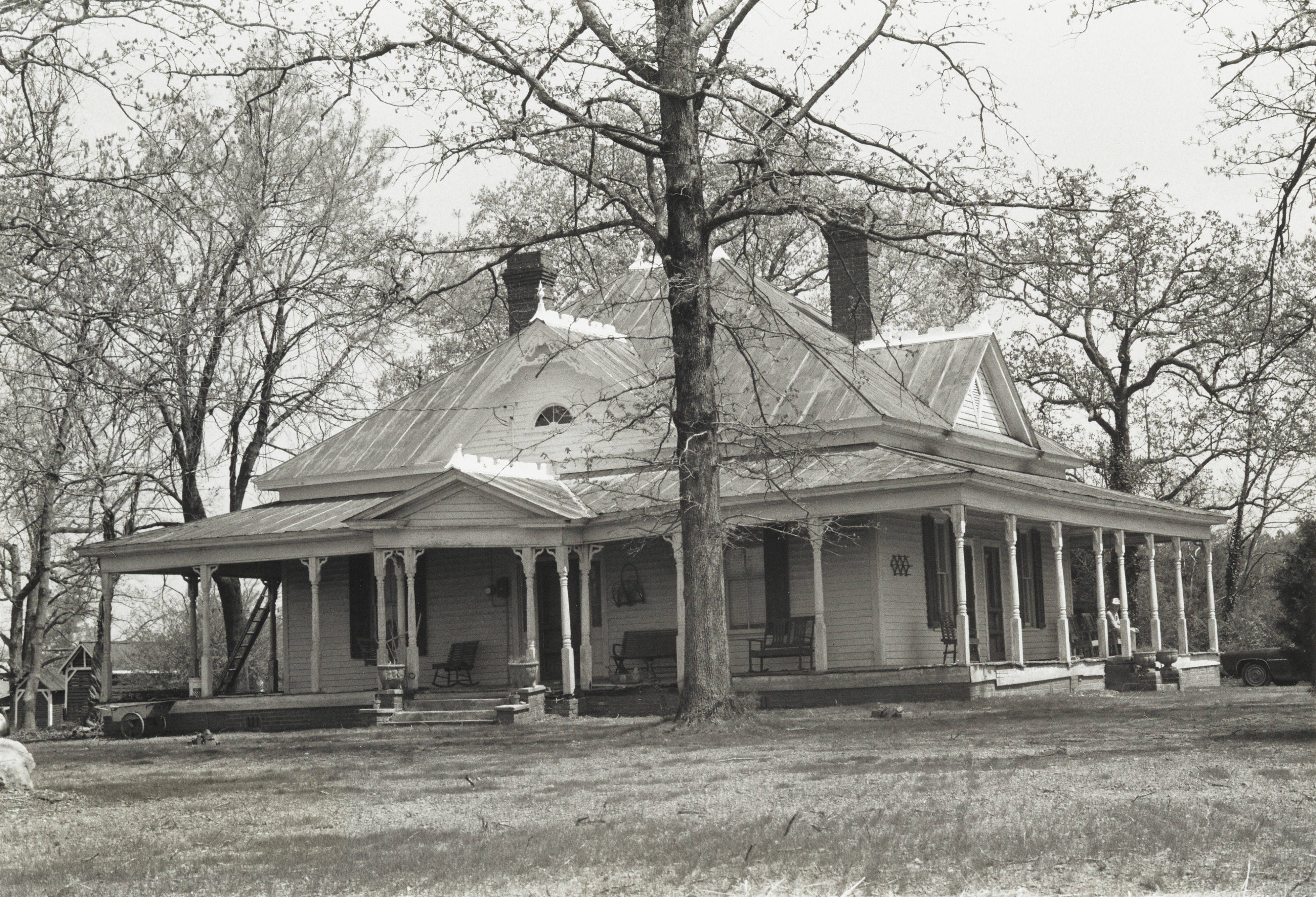 The house is a one-story double-pile high-hip-roof residence with a Colonial Revival foursquare plan but with Queen Anne details. More information about this photograph can be found on page 149 of the book The Architectural Heritage of Chatham County, North Carolina written by Rachel Osborn and Ruth Selden-Sturgill.