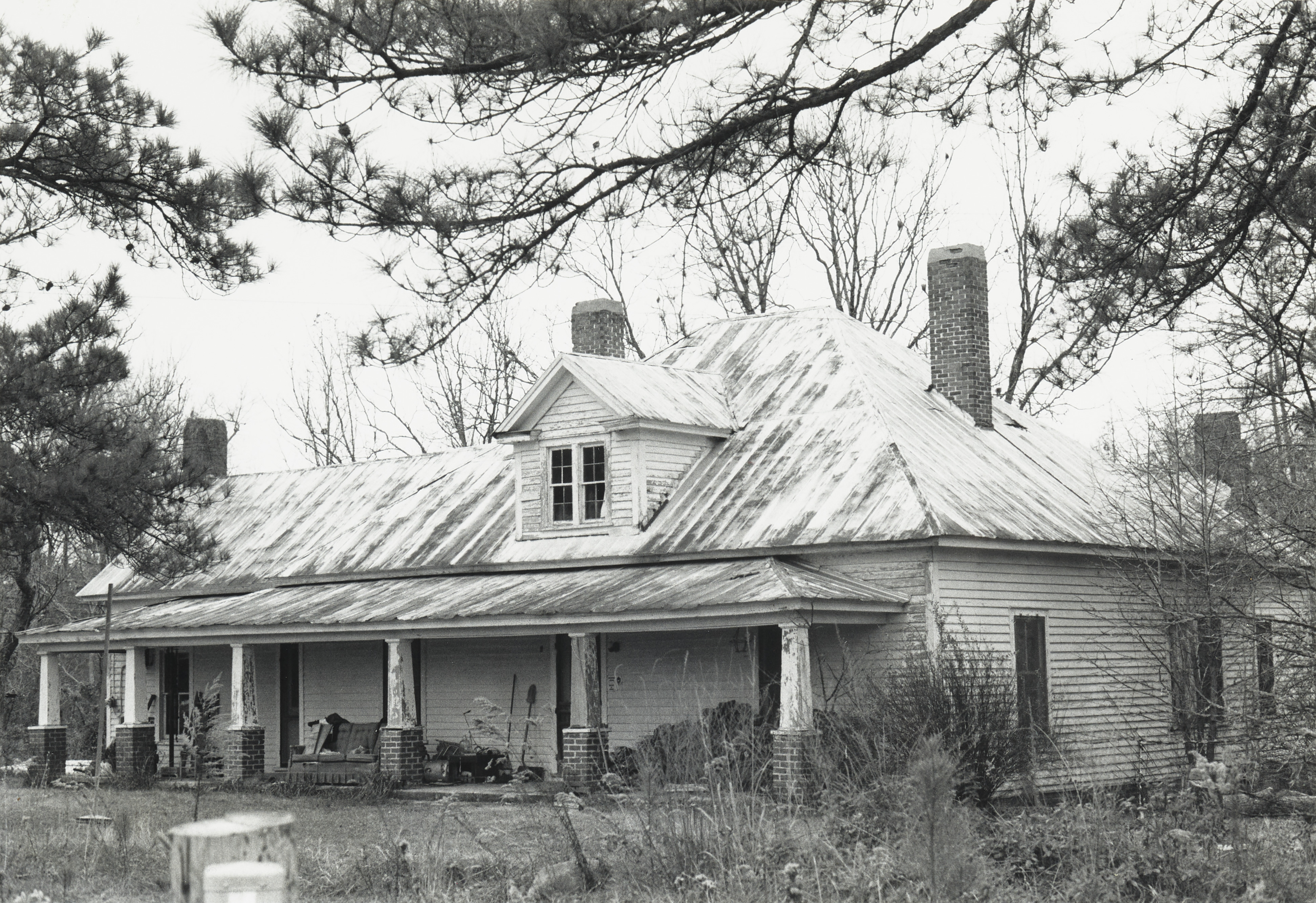 The residence is a one-and-a-half-story five-bay double-pile plan high-hip roof house with a main block that follows a standard vernacular Colonial Revival four-square plan. More information about this photograph can be found on page 194 of the book The Architectural Heritage of Chatham County, North Carolina written by Rachel Osborn and Ruth Selden-Sturgill.