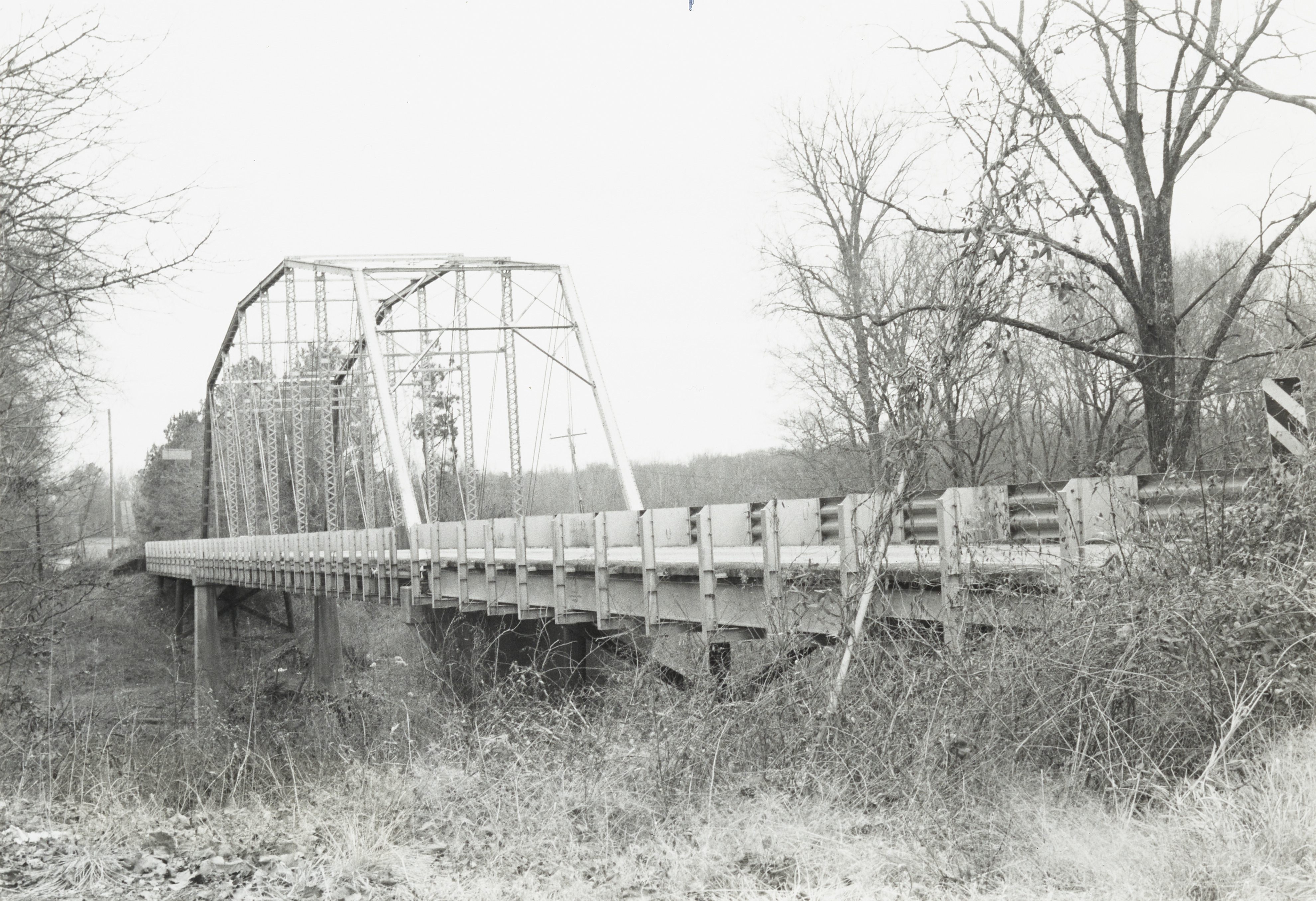 The bridge, built in 1908, is a metal truss bridge that spans the Deep River. More information about this photograph can be found on page 259-260 of the book The Architectural Heritage of Chatham County, North Carolina written by Rachel Osborn and Ruth Selden-Sturgill.