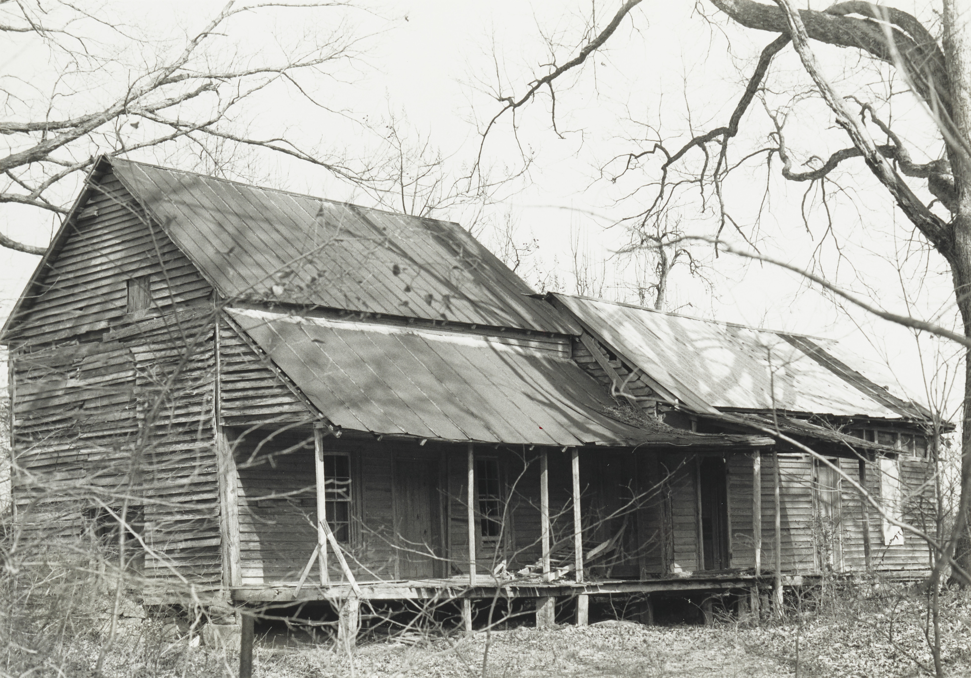 The complex, built around the mid-19th century, is a one-and-a-half-story three-bay facade log cabin joined with V-notches, a steeply pitched shed porch, hall-parlor interior, and an end chimney. More information about this photograph can be found on page 265 of the book The Architectural Heritage of Chatham County, North Carolina written by Rachel Osborn and Ruth Selden-Sturgill.