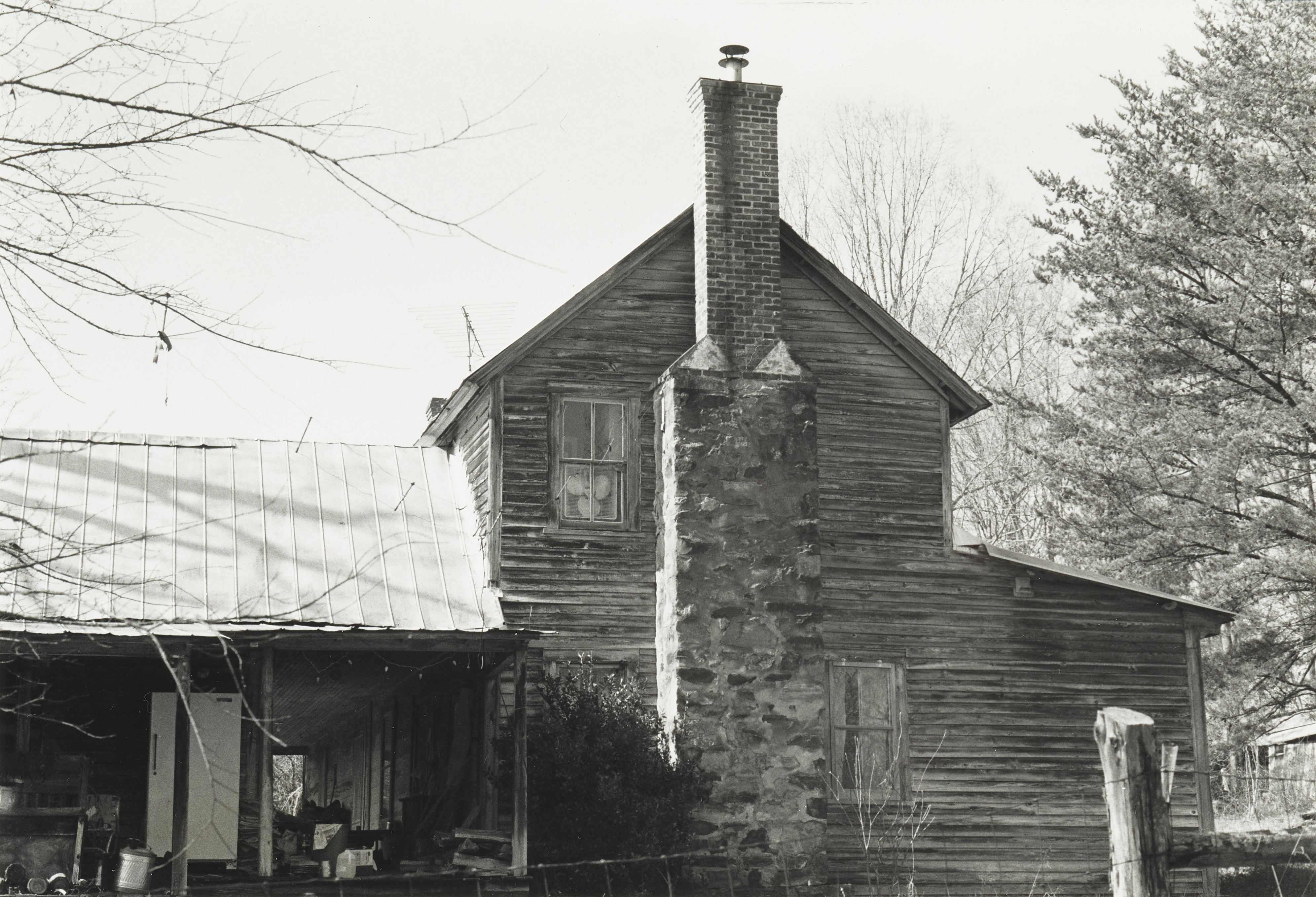 The residence, built circa 1903, was constructed around an older one-and-a-half-story dwelling. The house is currently a five-bay single-pile structure with a hip-roof porch with turned posts, balustrade, and sawn brackets; a brick common-bond end chimney; narrow-board sheathing; and Victorian mantels. The photograph shows the log portion of the house. More information about this photograph can be found on page 269 of the book The Architectural Heritage of Chatham County, North Carolina written by Rachel Osborn and Ruth Selden-Sturgill.