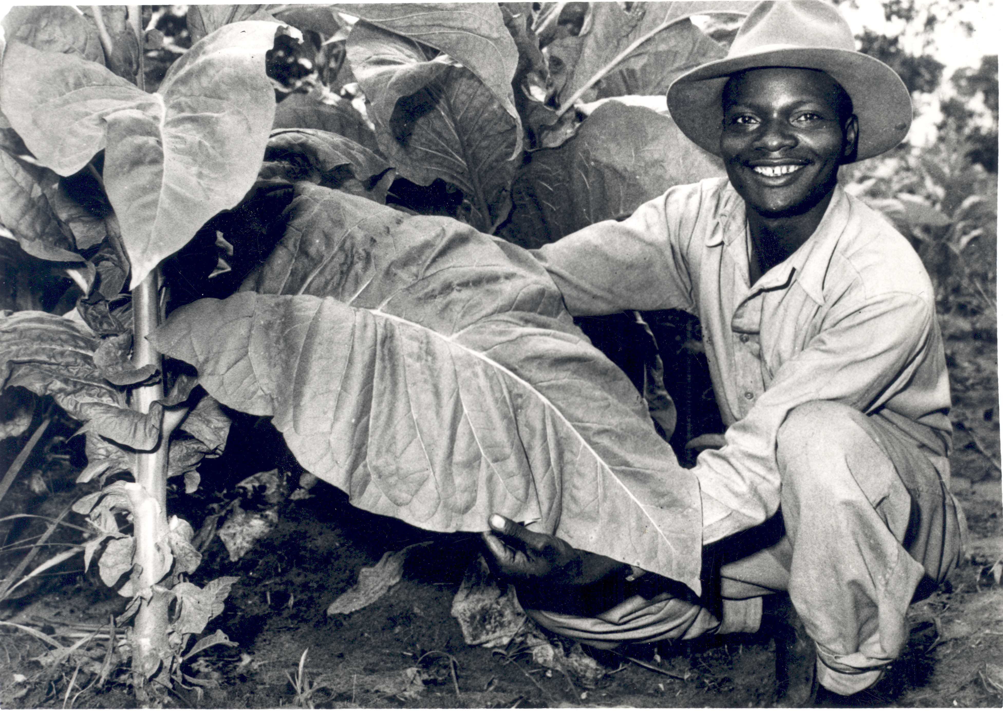 Unidentified Black Adult Displaying Large Tobacco Plant Leaf