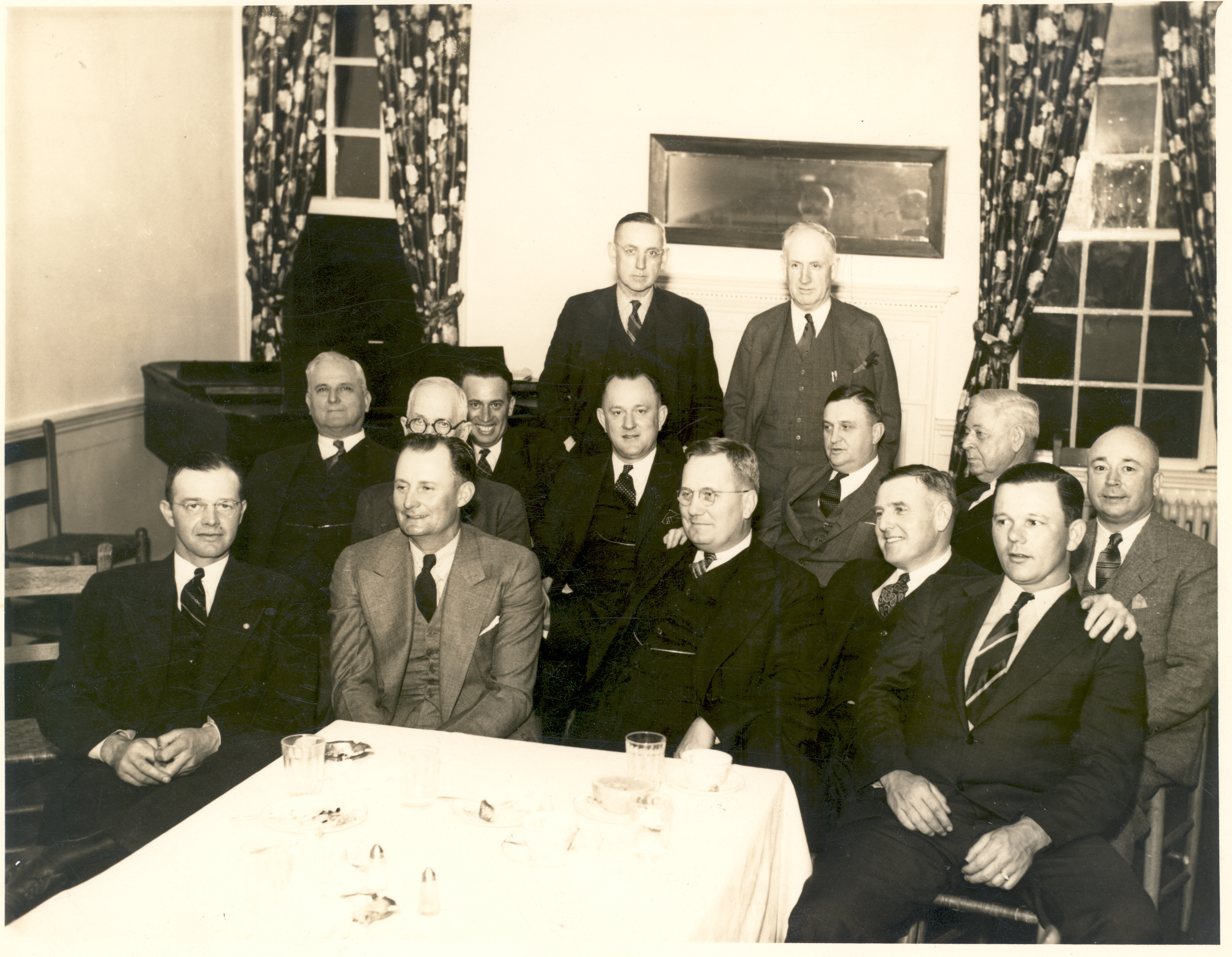 Back row, l. to r.: C.A. Johnson, unidentified, W. J. Bateman, W. W. Green, George Earnhart, Dr. T. H. Royster, S. N. Clark, J. W. Forbes. Gift of B. M. Bass, Jr., 1987.