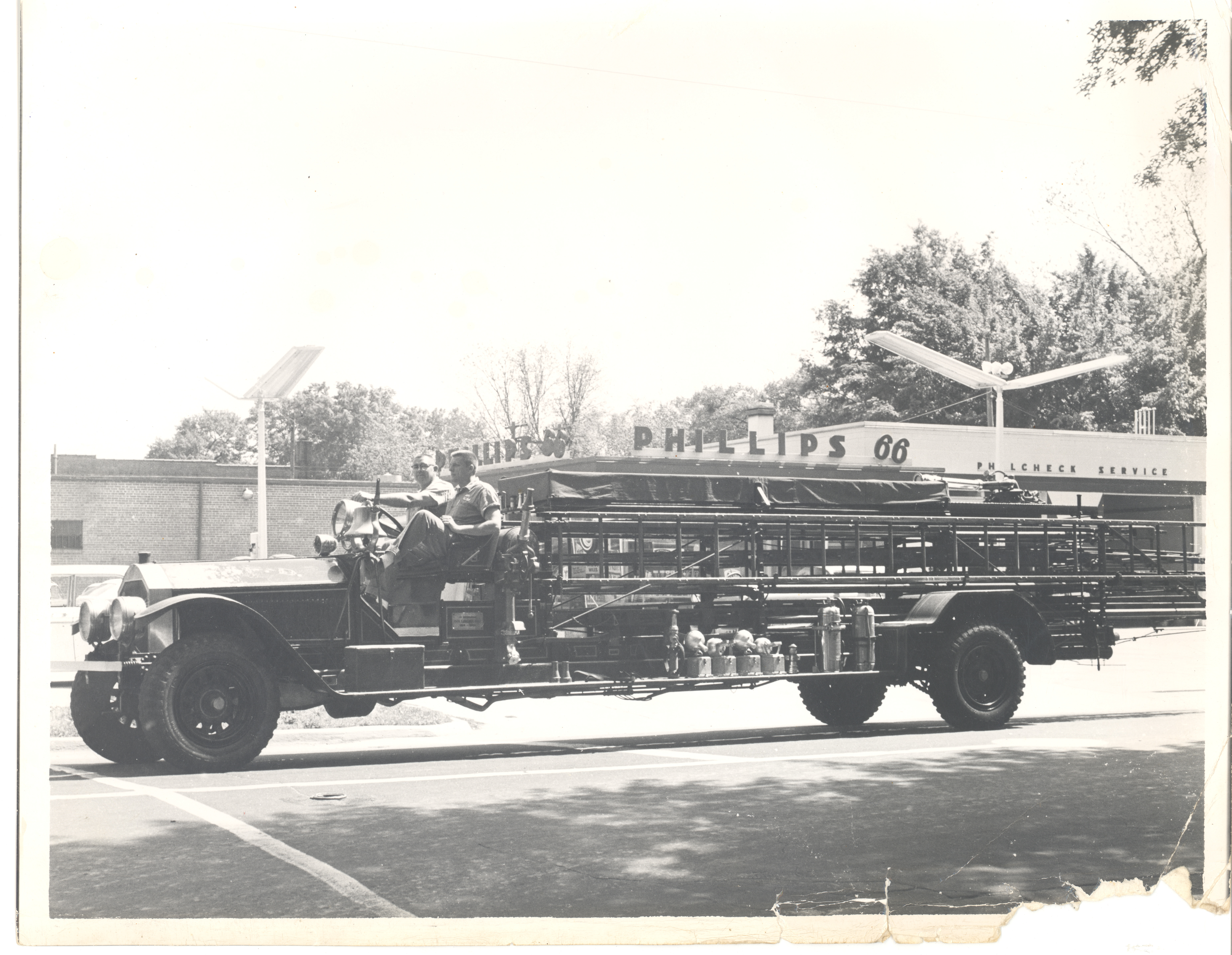 Two Unidentified Adults in Front Seat of Ladder Truck