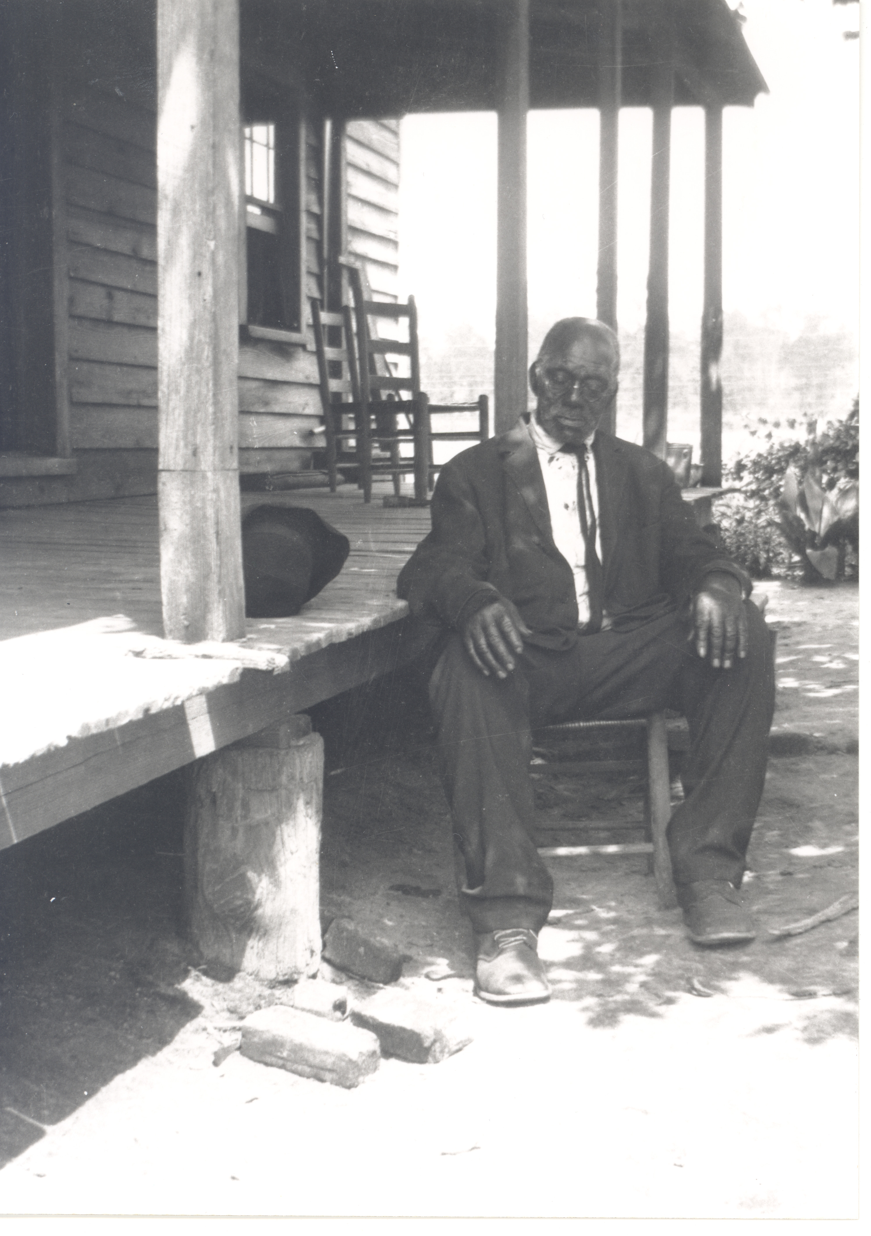Adult Asleep or Looking Down in Chair Near Porch