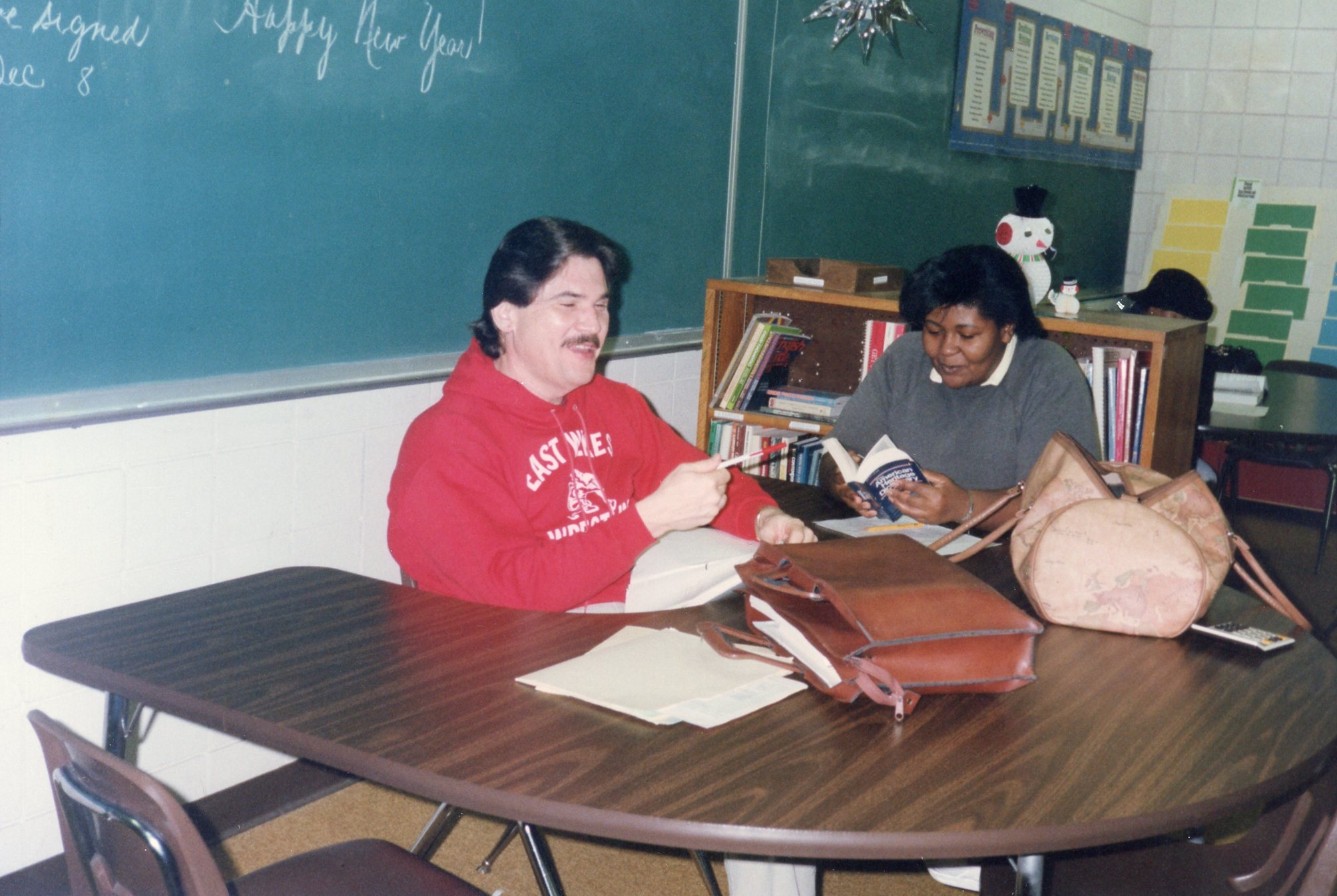 Wanda Teasley (right) works with unknown tutor in the Mind Lab, 1990.