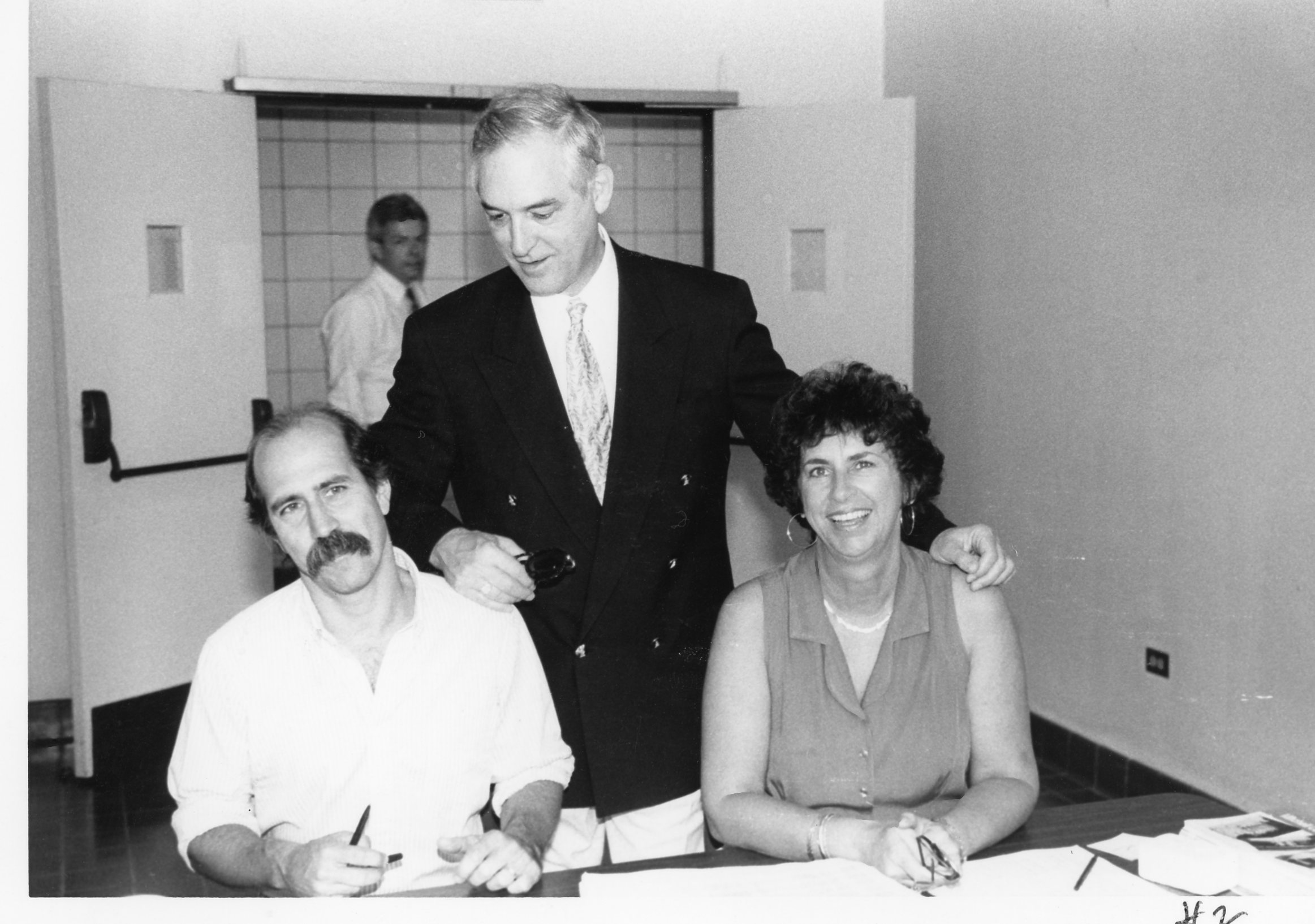 Foreground, left to right: Joseph Bethaniti, Dr. Douglas O. Eason, and Phyllis Mayberry; background: John Yucado. Date unknown.