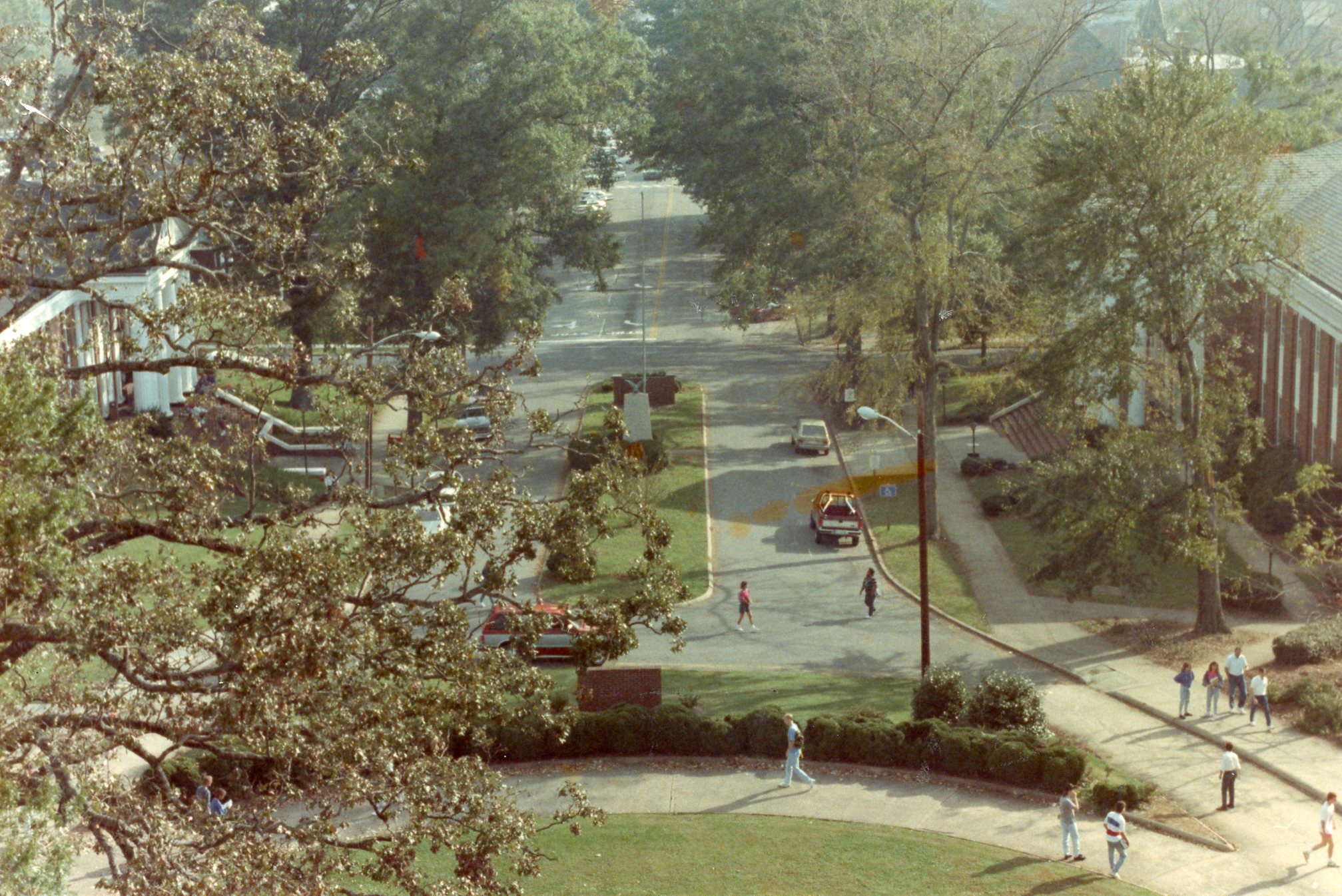 Aerial View of Students on Mitchell Community College Circle and Broad Street, Date Unknown