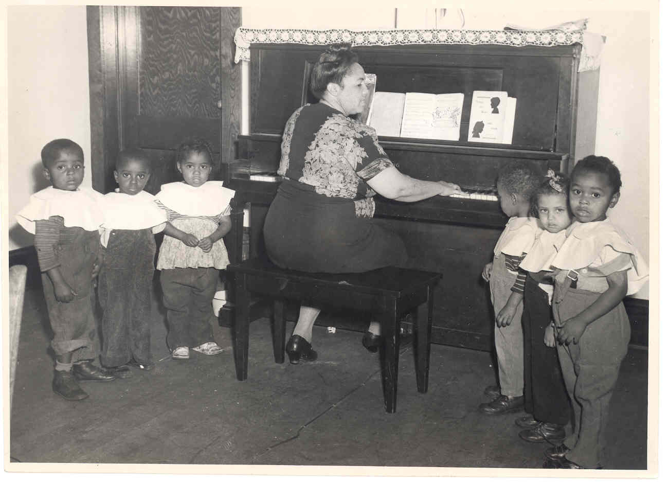 Ms. Wentz at the piano with children.