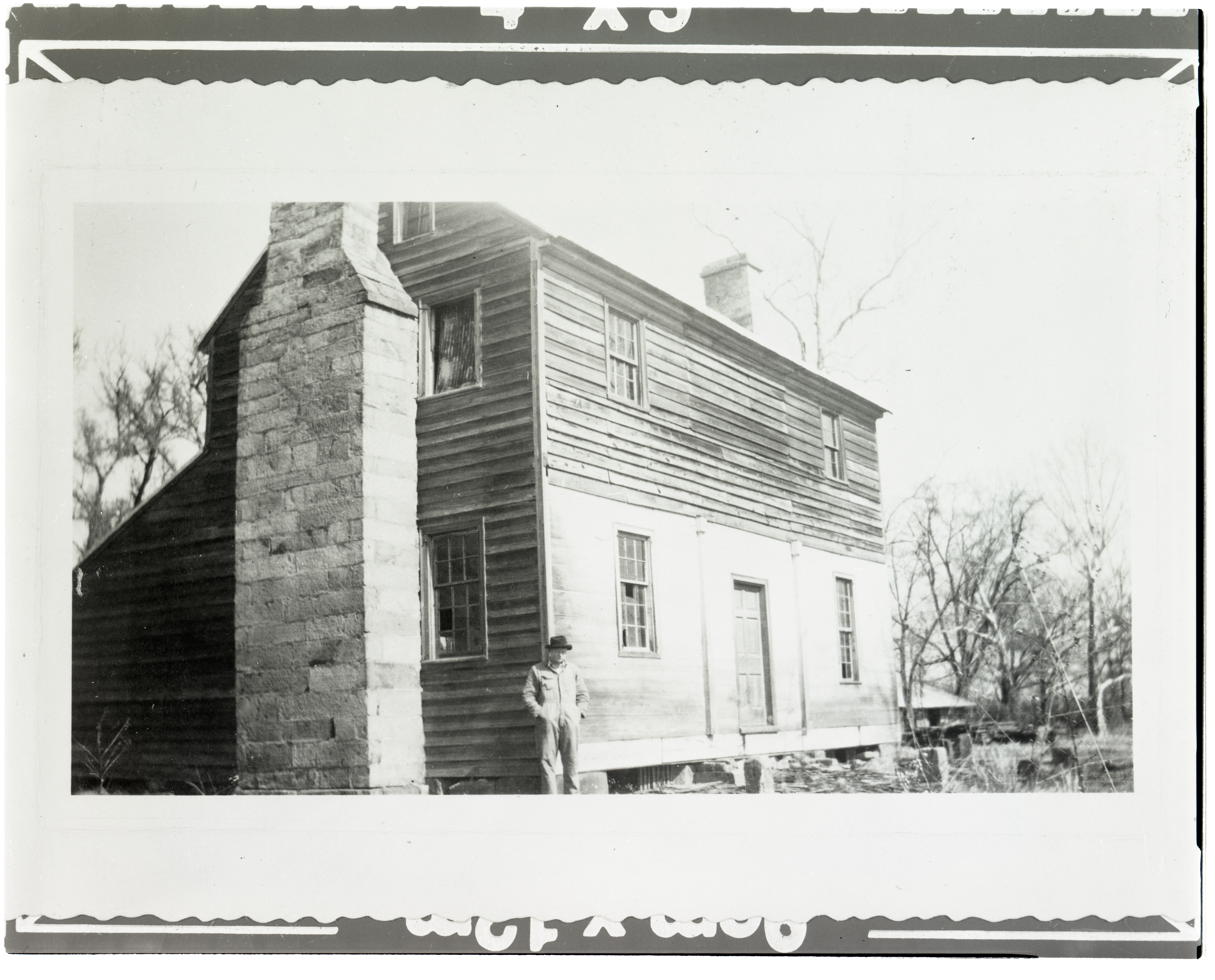 A black-and-white negative of a wooden house located on Cotton Road in Sanford, North Carolina. The house was at this point owned by Evander McIver.