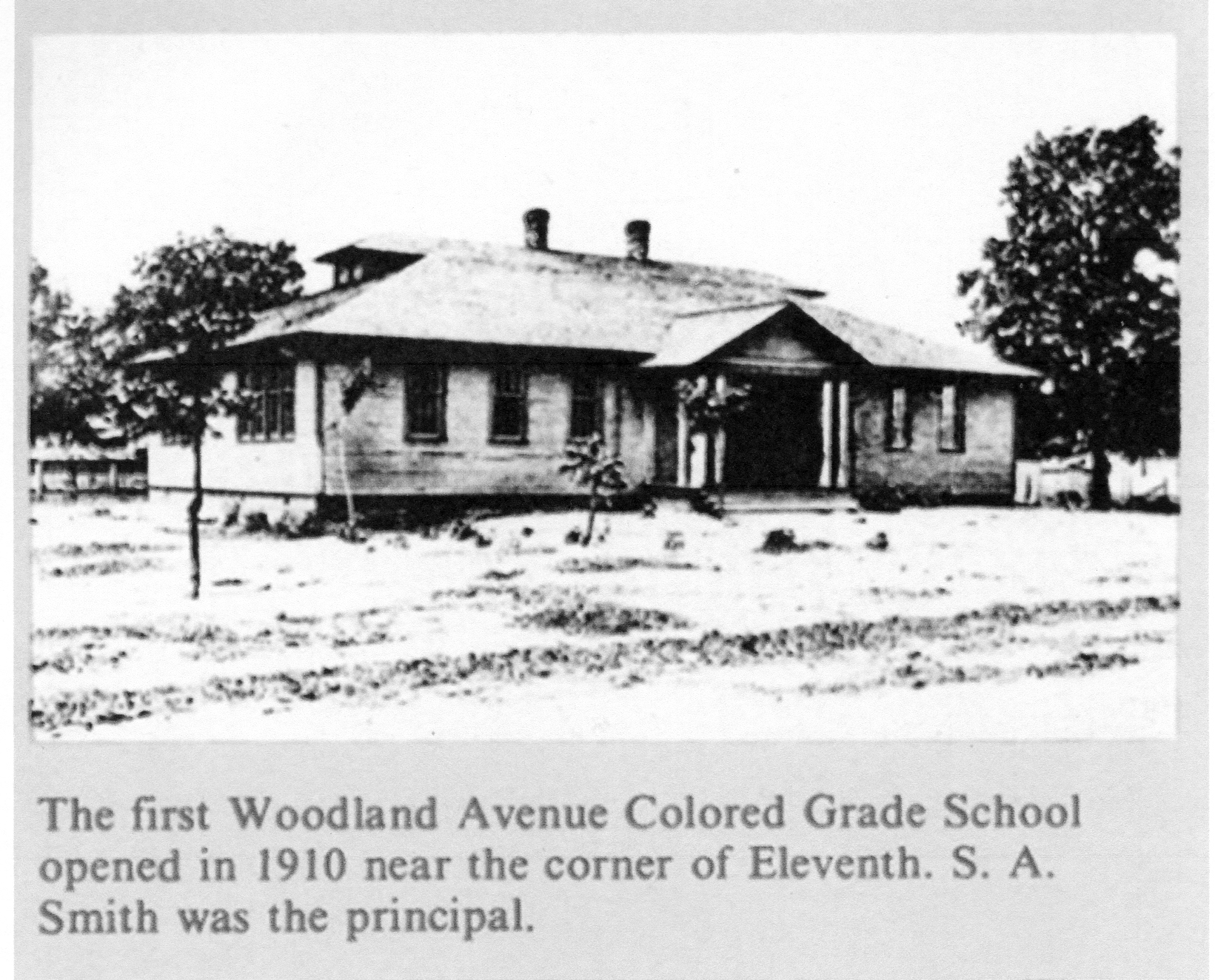Caption: The first Woodland Avenue Colored Grade School opened in 1910 near the corner of Eleventh. S. A. Smith was the principal.