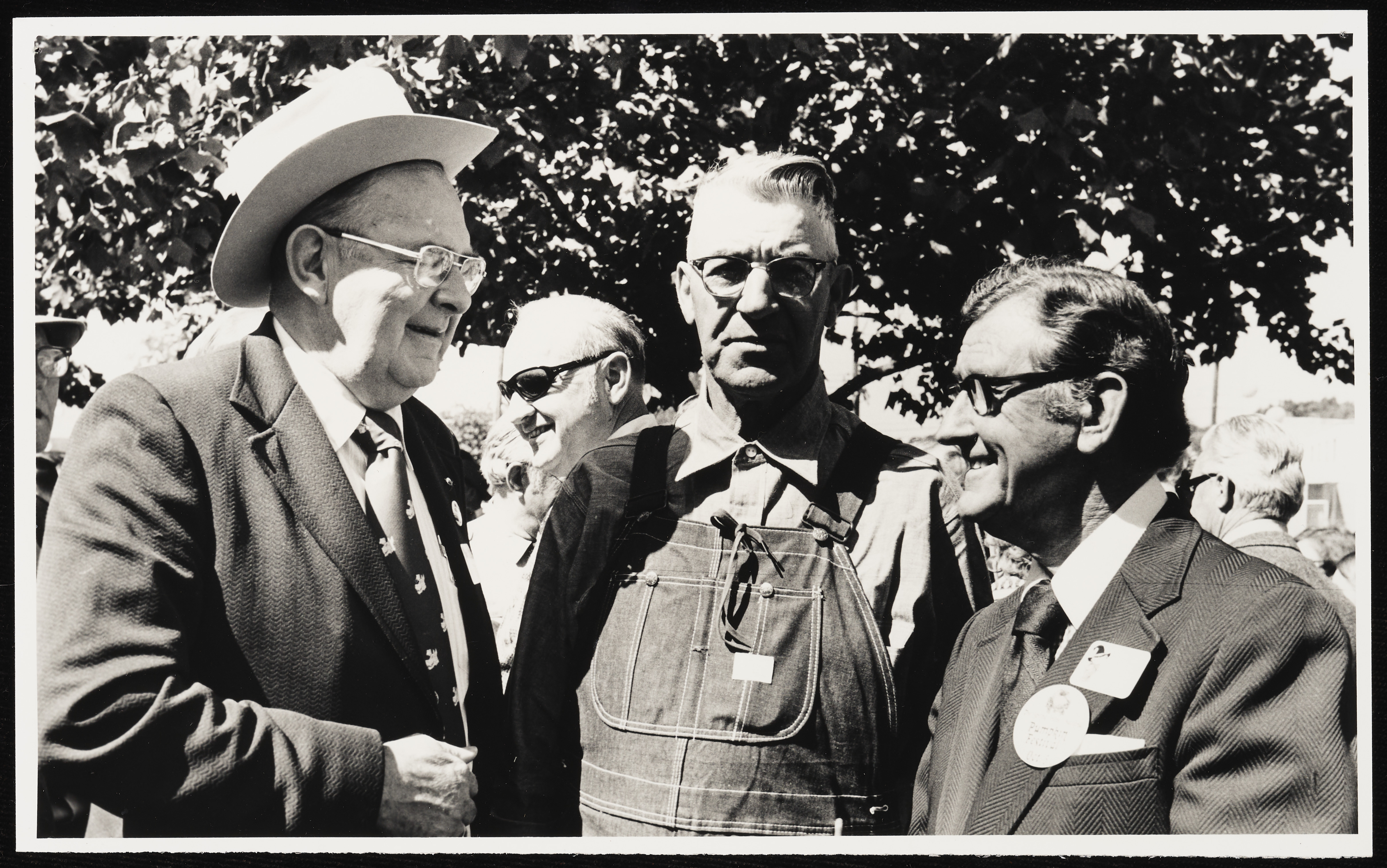 Agricultural Commissioner Jim Graham (left) conversing with an unidentified farmer (center) and Congressman L. H. Fountain (right).