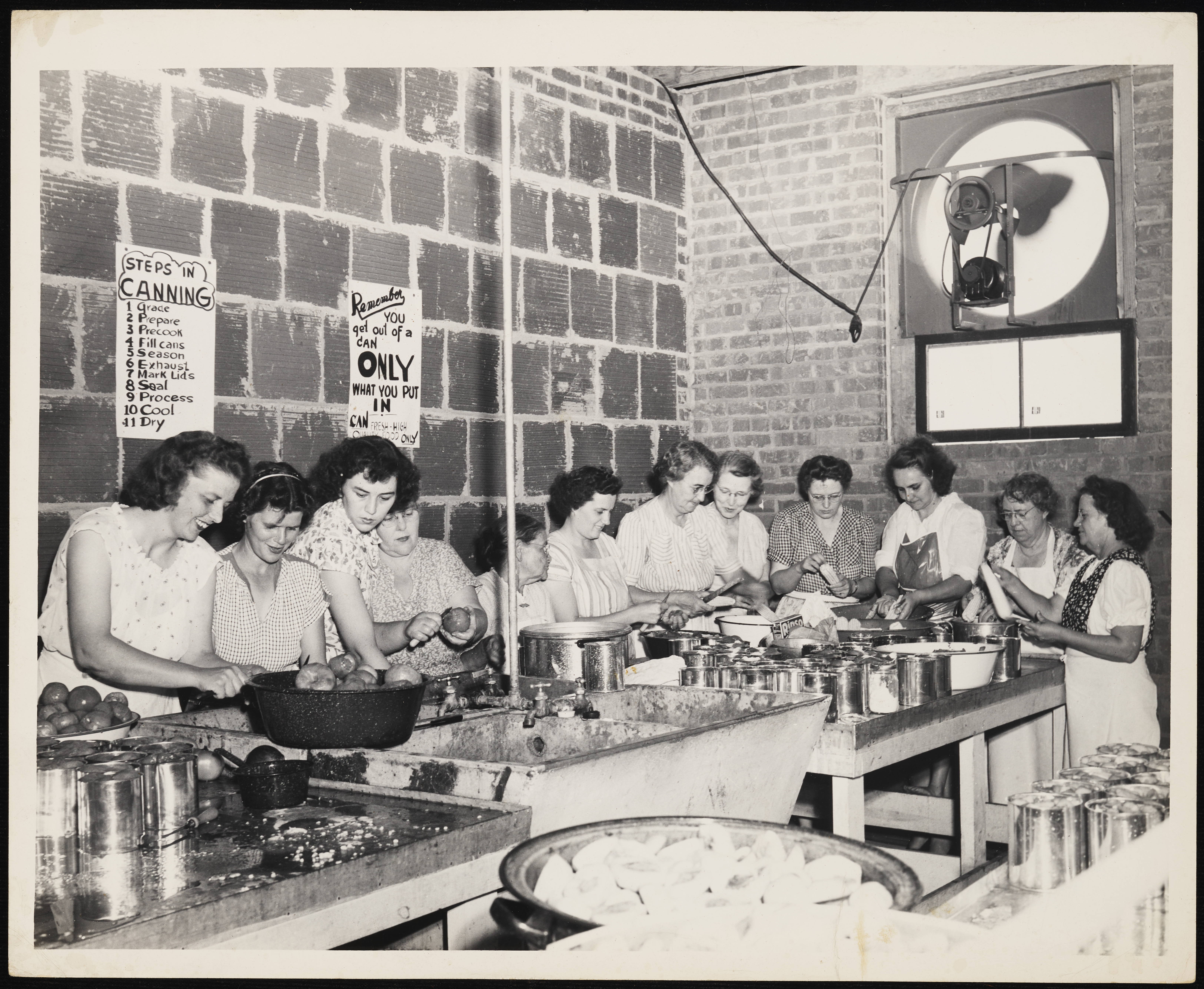 Women work to prepare apples and corn for canning in one of several Lee County canneries operated in the 1940s and 50s. Appeared in the Farm Edition of The Sanford Herald on September 11, 1947 on page five.