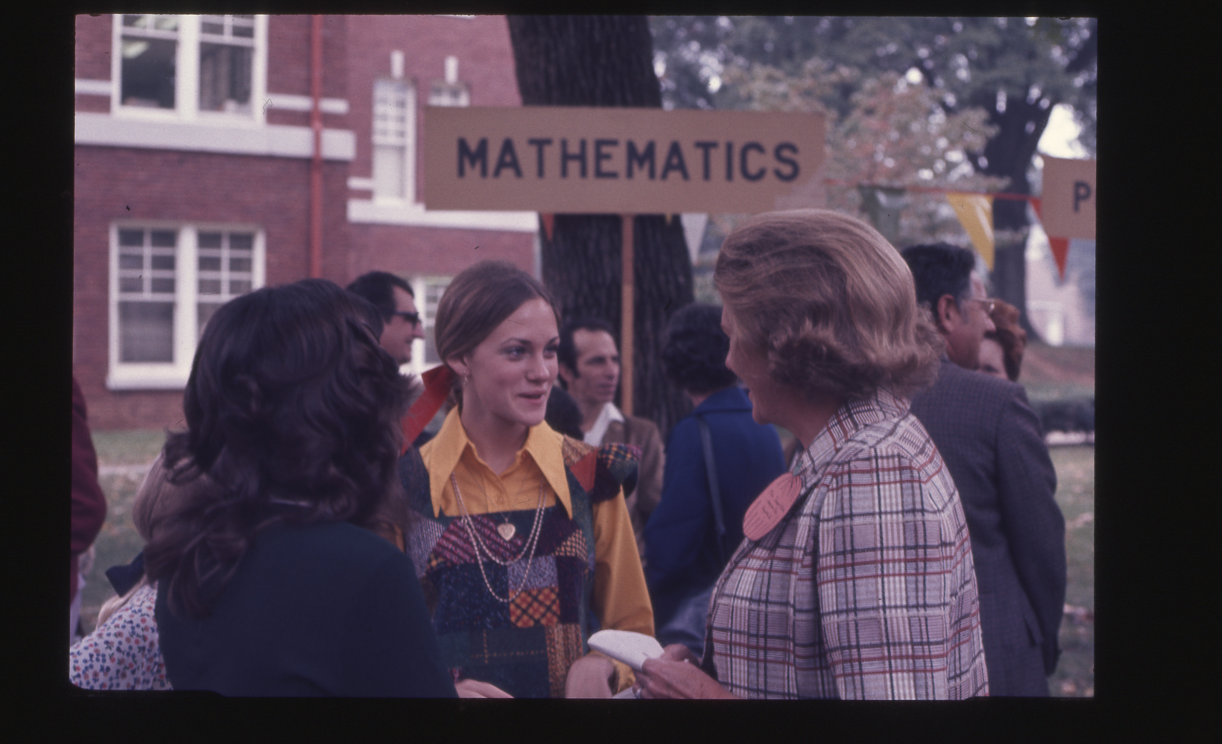Students and faculty members attend a fair at Queens University of Charlotte. Booths, signs, and decorations can be seen.