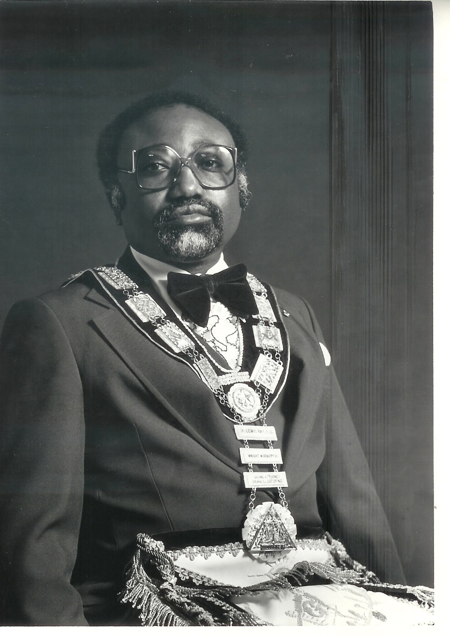 Individual in Masonic regalia. One badge says Grand Attorney, Grand Lodge of N.C.