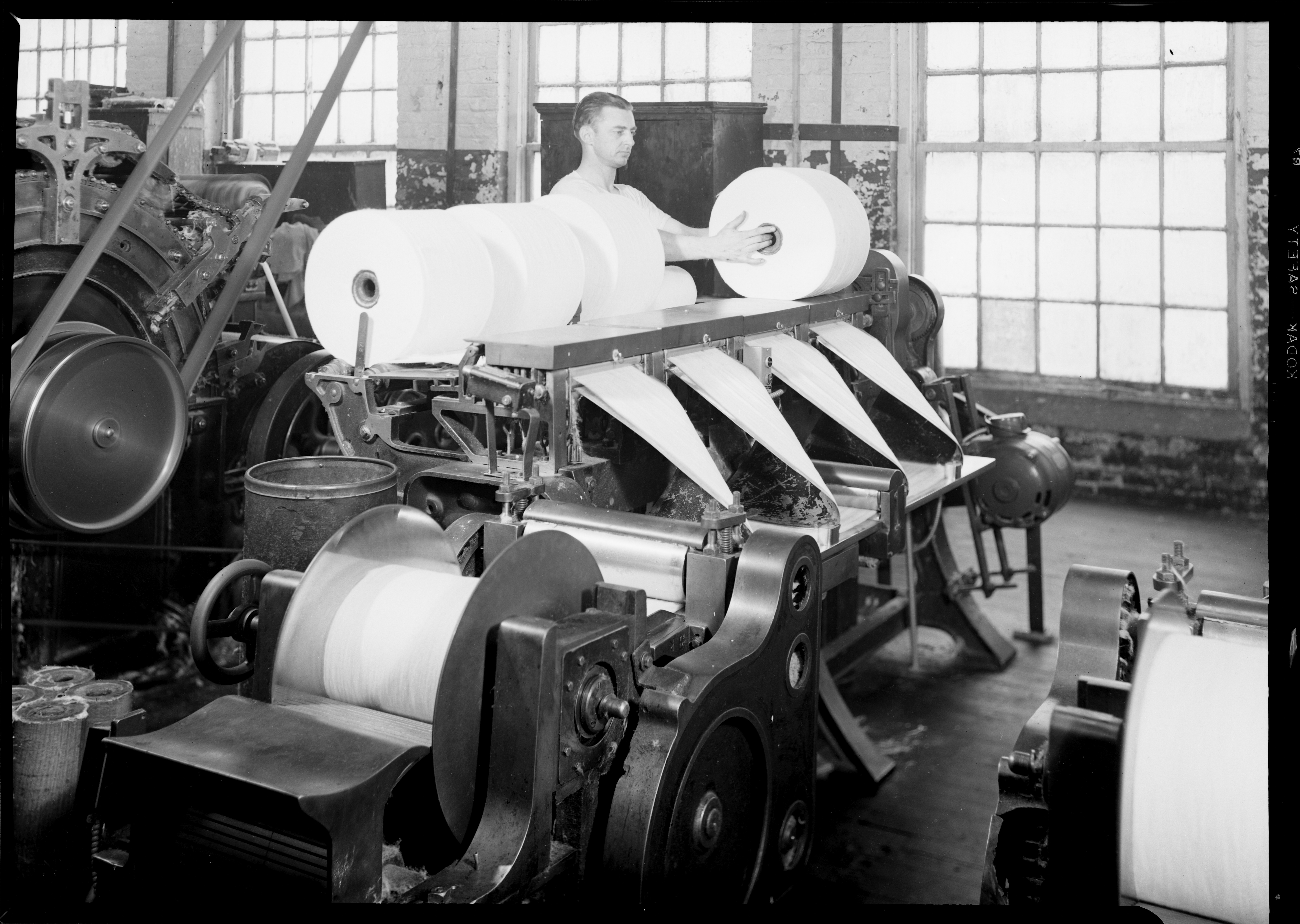 Commercial. Safety Film. Envelope # 16-596. Envelope Text: Barbet Mills. Content: Man operating machinery.