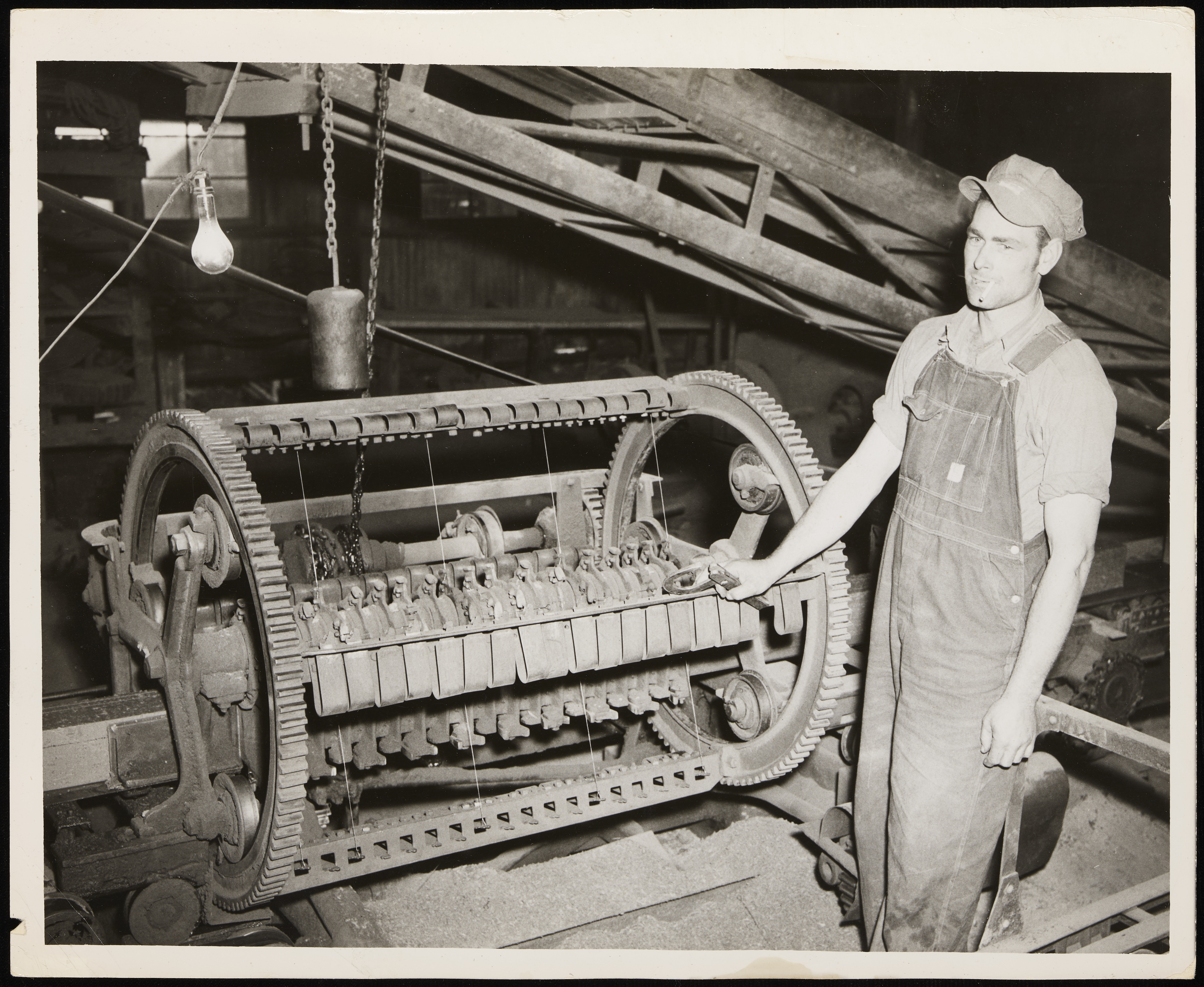 Unidentified adult with equipment. Photograph taken by a Sanford Herald staff photographer. The image appeared in the January 1, 1951 issue of The Sanford Herald on page 1, section 2.